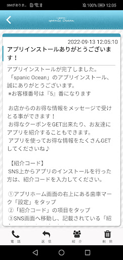 spanic OceanのアプリをSNSを通じてお友達に紹介する事ができます。
