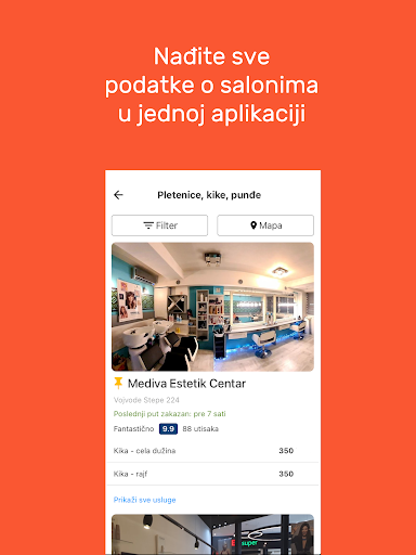 Pronađite najbolje salone i nove usluge u salonima lepote, proverite datume i vremena kada imaju slobodne termine i izaberite onaj koji Vama najviše odgovara. Pri tome možete uporediti cene, trajanja tretmana, utiske i ocene koje su dali drugi korisnici SrediMe servisa. Svi saloni su predstavljeni sa fotografijama, tako da možete zaviriti u svaki salon pre zakazivanja.