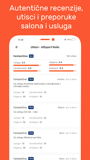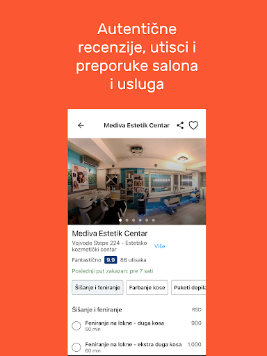 Vaš novi izgled ili utiske o salonima možete podeliti sa našom zajednicom. Svi utisci o salonima na SrediMe su 100% provereni i dolaze isključivo od korisnika koji su zakazali uslugu koristeći ovaj servis.