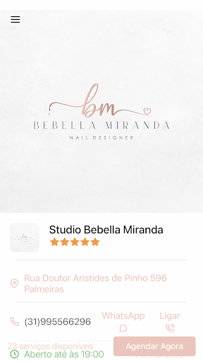 O App do Studio Bebella Miranda foi desenvolvido pensando em você! Agora é possível fazer agendamentos de forma online. É só escolher o serviço, profissional, dia e hora, sem complicações!