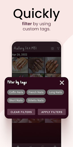 Use the quick swiping controls to like or dislike any nail styles. Explore a ton of nail designs. Swipe right on the designs you like to save it to your gallery. Swipe left to ignore the styles you don’t like and move on to the next design.