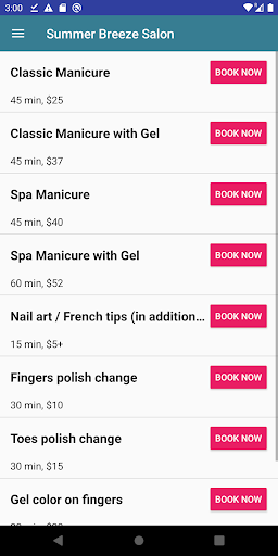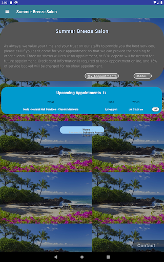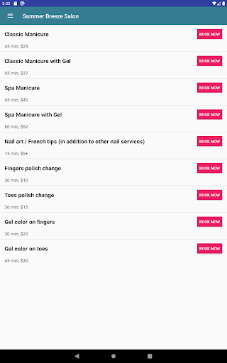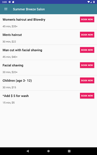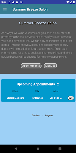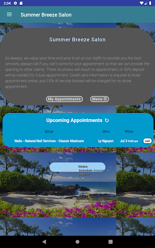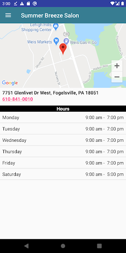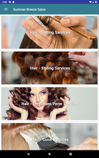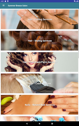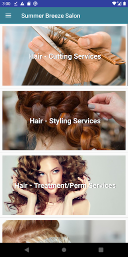 From the Summer Breeze Salon mobile app, you can book your appointments, view our services, view our staff as well as view the salon’s location and contact information. You can also click through our image gallery.