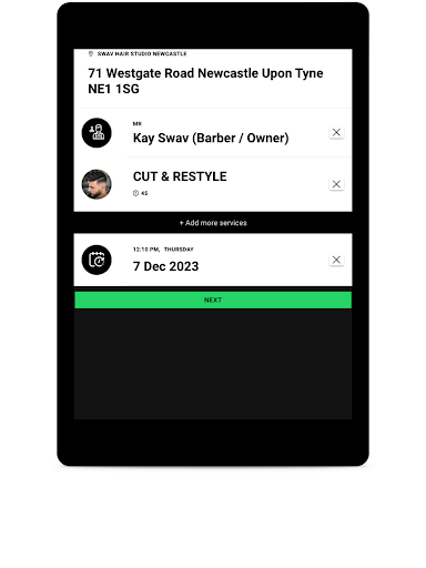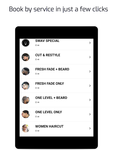 Welcome to the mobile booking app for Swav Hair Studios. Check availability and book services with a time slot that fits your schedule. No more waiting around, get yourself booked in.