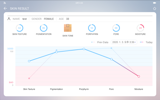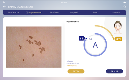 Analyze your skin and supply its score & grade via T-Scope device that made by Truesystems.