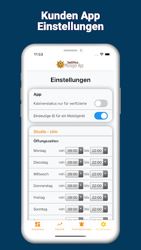 Mit dieser spezialisierten App, besitzen ausschließlich Sonnenstudio-Betreiber/-innendie Möglichkeit, immer und überall Statistiken über Besucherzahlen, App-Nutzungen und Einstellungen ihrer Sonnenstudios, aufzurufen.
