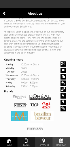 A Look… A Feel…A Difference. Tapestry Salon & Spa is at your service. Download our app today to access monthly specials, view our latest hair stories, and book appointments all from your mobile phone.