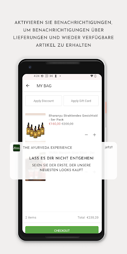 Laden Sie Europas authentischste App für ayurvedische Hautpflege herunter und steigern Sie Ihr Online-Einkaufserlebnis, indem Sie von den Vorteilen der ersten App-Kaufrabatte und exklusiven In-App-Angeboten und Geschenken profitieren. Melden Sie sich an, um AyuRewards zu erhalten, und kaufen Sie nach Kategorien ein, filtern Sie nach Preisen, Bestsellern und Neuzugängen. Seien Sie unter den Ersten, die über neue Produkteinführungen, Preissenkungen und Verkäufe durch unsere Push-Benachrichtigungen informiert werden. Neu bei Ayurveda? Testen Sie unsere Produkte mit 30-tägiger Geld-zurück-Garantie.