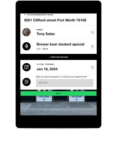 Welcome to The Den Barbershop & Salon app! Enjoy easy booking and a great atmosphere with top-notch services. Find the ideal time for haircuts, beard trims, and more, all tailored to your schedule. Get full details on location and hours, and book your next appointment with just a few taps. Download now for a hassle-free grooming experience!