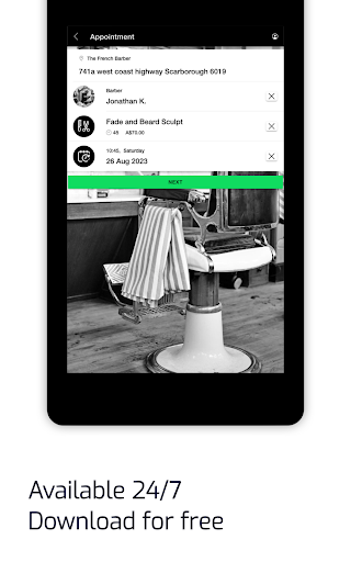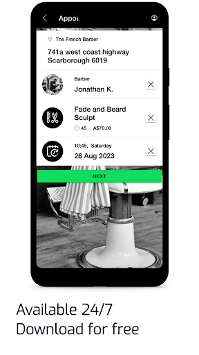 Booking app for The French Barber, Scarborough, Perth, Australia