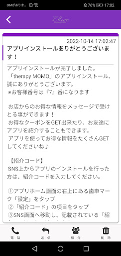 TherapyMOMOのアプリをSNSを通じてお友達に紹介する事ができます。