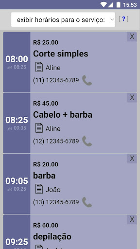 – definir o tempo de duração de cada serviço do salão, afim de reservar este tempo na agenda quando você ou os clientes gravam agendamento;