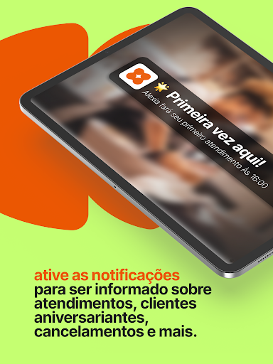 Com as notificações, ajudamos você a lembrar quando um agendamento for cancelado e também quando o cliente chegar ao salão, solicitar um agendamento online, for aniversariante e mais.
