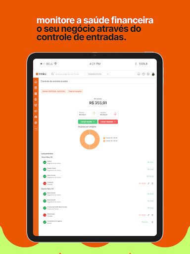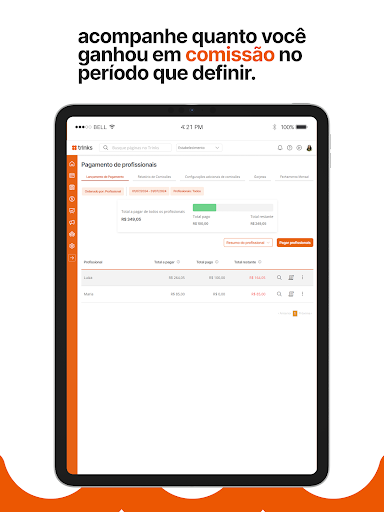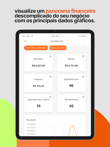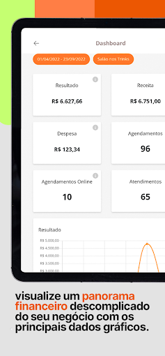 Confira o histórico de entrada e saída e os principais indicadores do seu negócio. No app Trinks Profissional, o administrador monitora toda a movimentação financeira no período que escolher.