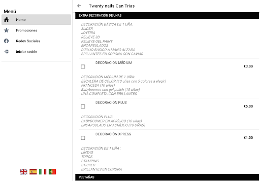 El equipo de Twenty Nails está extensamente formado y dispone de una larga experiencia en el sector, algo que nos convierte en el sitio indicado al que acudir para una bonita belleza de manos o pies, o un relajante tratamiento facial. Entre su extensa carta de servicios se encuentran distintos tipos de depilación, masajes, maquillaje, manicuras y pedicuras, o tratamientos de embellecimiento de la mirada como lifting de pestañas o tinte.
