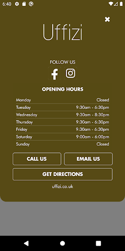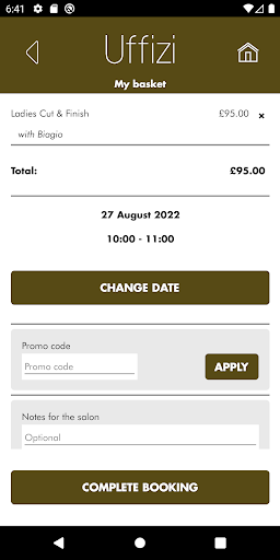 The Uffizi Hair Gallery booking app allows clients to log on and make bookings online under their own profile 24/7. Clients can track loyalty points as well as looking at historic and future bookings and get directions for their favourite salon.
