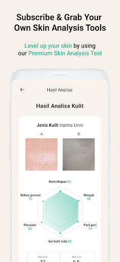Dapatkan produk k-beauty yang direkomendasikan sesuai jenis kulitmu dengan diskon s/d 70%! Ada bonus gratis ongkir, voucher diskon, lensa khusus, dan benefit lainnya. Dan lihatlah perubahan pada kulitmu setiap harinya melalui Premium Skin Analysis dengan lensa khusus (Micro 5x)!