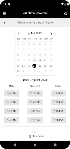– Select your benefit: you will have an estimate of the time at which you can be supported by your hairdresser Valentin.