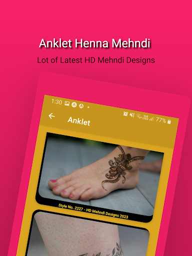 This app also contains Mehndi Designs for Belly/Tummy, Anklet, Shoulder, Leg, and Back. Simple Mehndi Designs and Tattoos are especially for men to enjoy parties with mehndi designs.