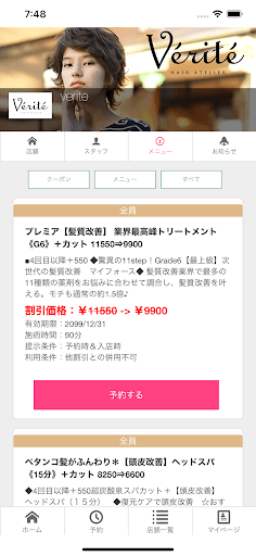 千葉県習志野市 京成大久保の美容室【Verite(ベリテ)】の公式アプリです。