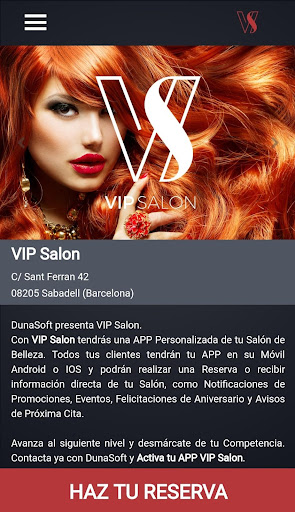 Si tu Salón de Belleza aún no tiene VIP Salon pídele que contacte con DunaSoft para activarlo y beneficiarse de todas las ventajas que está APP le aportará.