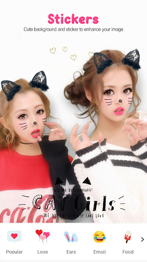 Apply numerous makeup filters and effects on your selfies and photos to enhance your looks, use different mascaras, lipstick, eyeshades, blushes, colorful lenses, various hair colors, foundations, etc.