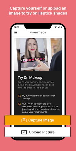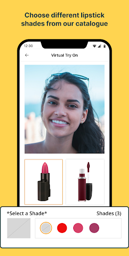 – Upload a picture or click a real-time image and begin makeup try-on.