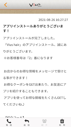 Vius hairのアプリをSNSを通じてお友達に紹介する事ができます。