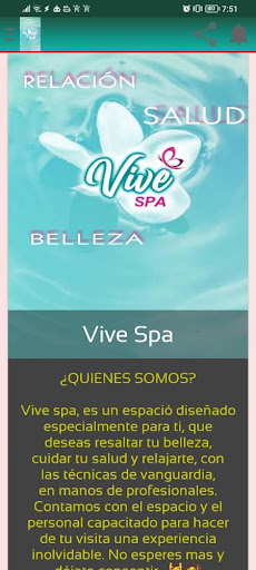 Vive spa, es un espació diseñado especialmente para ti, que deseas resaltar tu belleza, cuidar tu salud y relajarte, con las técnicas de vanguardia, en manos de profesionales. Contamos con el espacio y el personal capacitado para hacer de tu visita una experiencia inolvidable. No esperes mas y déjate consentir…