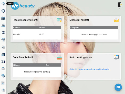 We Beauty Software si impegna a trasformare la gestione del tuo salone in un’esperienza più efficace, efficiente e piacevole. La nostra applicazione è l’alleato perfetto per chi cerca di massimizzare la produttività, migliorare il servizio clienti e aumentare la redditività del proprio business. Con We Beauty Software, sei pronto a portare il tuo salone al livello successivo.