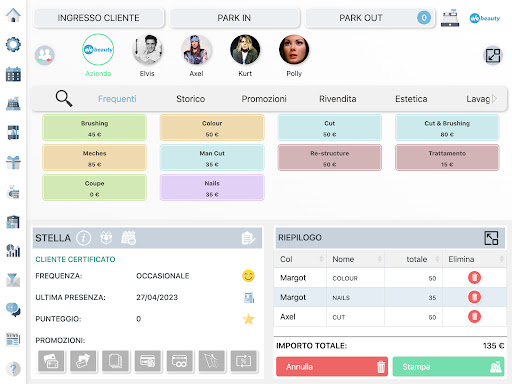 Cassa: Un sistema di cassa fluido e integrato che supporta diverse modalità di pagamento, semplificando le transazioni quotidiane.