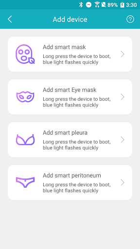 * WISCHA薇采星超智能護膚系統中共有眼、面、胸、腹四部位,皆可使用本APP控制,每部位有四功能供選擇,每次體驗為12分鐘。