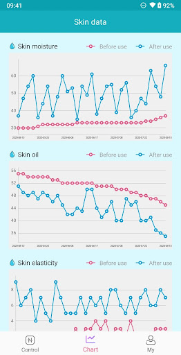 * 自動記錄每次護膚前後數據,有效了解自身膚況變化。