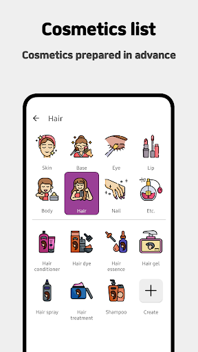 You can manage various categories of cosmetics such as makeup, skincare, and body care. You can also freely register your desired products in addition to the prepared basic items.