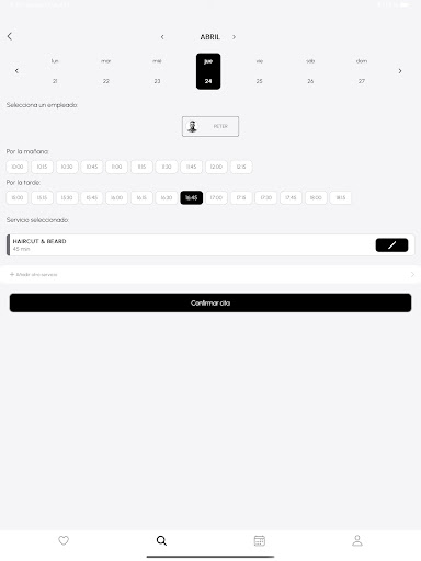 5. Selecciona tu horario: Revisa los horarios disponibles de tu barbero elegido y escoge el que más te convenga. Yeasy te muestra todas las opciones para que encuentres la más adecuada para ti y a tu barbero.