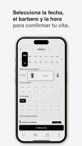 2. Elige una barbería: Explora las barberías disponibles en tu zona, lee opiniones de otros usuarios y decide cuál se adapta mejor a tus preferencias.
