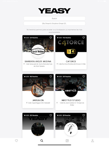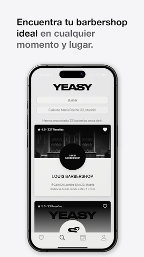 * Barberías cerca de ti: Localiza las mejores barberías en tu zona con facilidad. Solo tienes que añadir tu ubicación y Yeasy te mostrará las opciones disponibles.