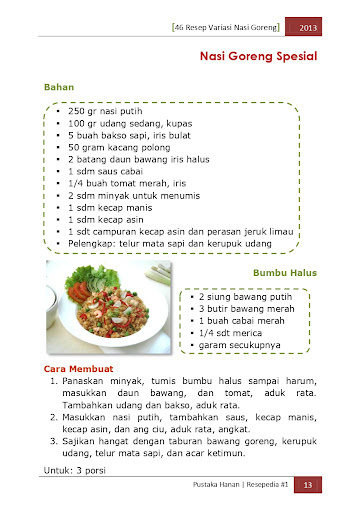 Siapapun bisa membuat nasi goreng, tapi pernahkah Anda merasa bosan dengan rasa nasi goreng yang itu-itu saja? Jika demikian, Anda bisa mencoba berbagai resep membuat nasi goreng melalui aplikasi ini.