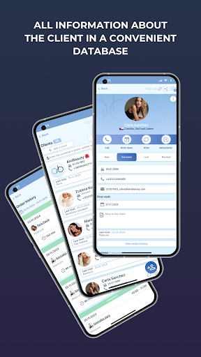 • Client Database (CRM): Keep all client information in one place — visit history, contacts, personal notes, before/after photos, and reviews. Managing clients has never been easier.