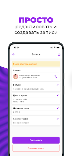 – Manage your schedule in just a few clicks: add, edit, or cancel appointments.