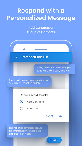 • Personalize auto reply messages and create a personalized list of contacts to respond to.