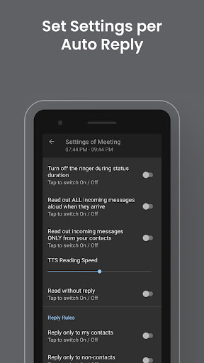 1. Automatically reply to missed calls and incoming SMS with pre-written (by you) text messages, ensuring that your phone remains silent