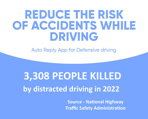 An In-Vehicle Hands-Free Auto Reply App helps you by providing a solution for defensive driving that enables you to manage your communication needs while minimizing distractions on the road. Research shows that distracted driving is a significant factor in road accidents, contributing to thousands of fatalities and injuries each year.