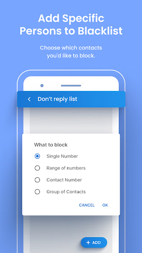 • Don’t Auto Reply list (blacklist) allows you to block text messages from specific contacts.
