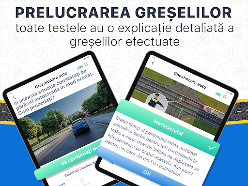 – Chestionare actualizate constant, pentru a te pregăti cu cele mai recente reguli de circulație