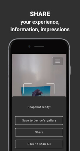 Using our app is extremely easy. Open the application and point the camera at the target image or QR code. If augmented reality is attached to this image, then the scanning frame will disappear, and your picture will come to live!
