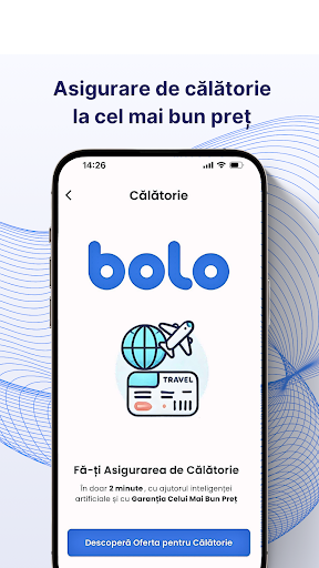 Aplicația BOLO îți oferă o soluție completă și eficientă pentru achiziționarea asigurărilor auto RCA și de călătorie (Travel), într-un mod rapid, sigur și fără bătăi de cap. Folosind tehnologie de Inteligență Artificială, BOLO simplifică întregul proces prin automatizarea completă a capturării datelor din documentele tale personale, eliminând necesitatea introducerii manuale a informațiilor.