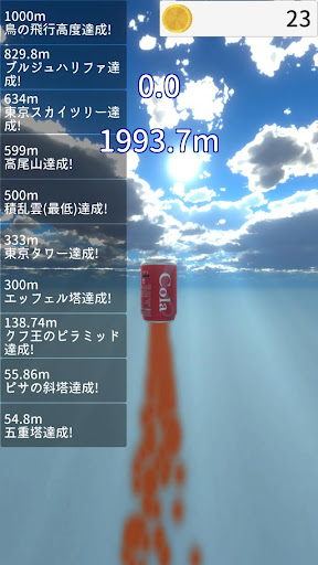 コインはコーラを強化するのに使えますので、どんどん強化してさらに高くコーラを打ち上げましょう。