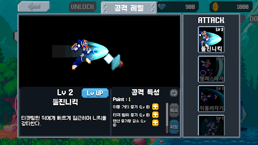 게임을 통해 얻은 재화로 공격 레벨을 올리고 특성을 부여할 수 있습니다.