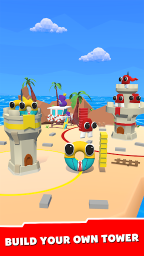 – Starting with a small tower, collect bricks and bring it back to power-up army and tower