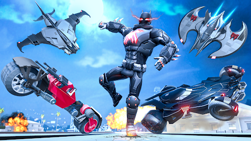 In Hero Bat Robot Bike Game, players get a powerful bat robot on a high-speed Bat motorcycle as they race through the streets of a futuristic city. As the hero bat robot, players will use their Bat motorcycle to speed through the city, dodging obstacles and enemies along the way. Players will need to use their quick reflexes and skillful driving to avoid crashing and keep their Bat motorcycle moving at top speed.